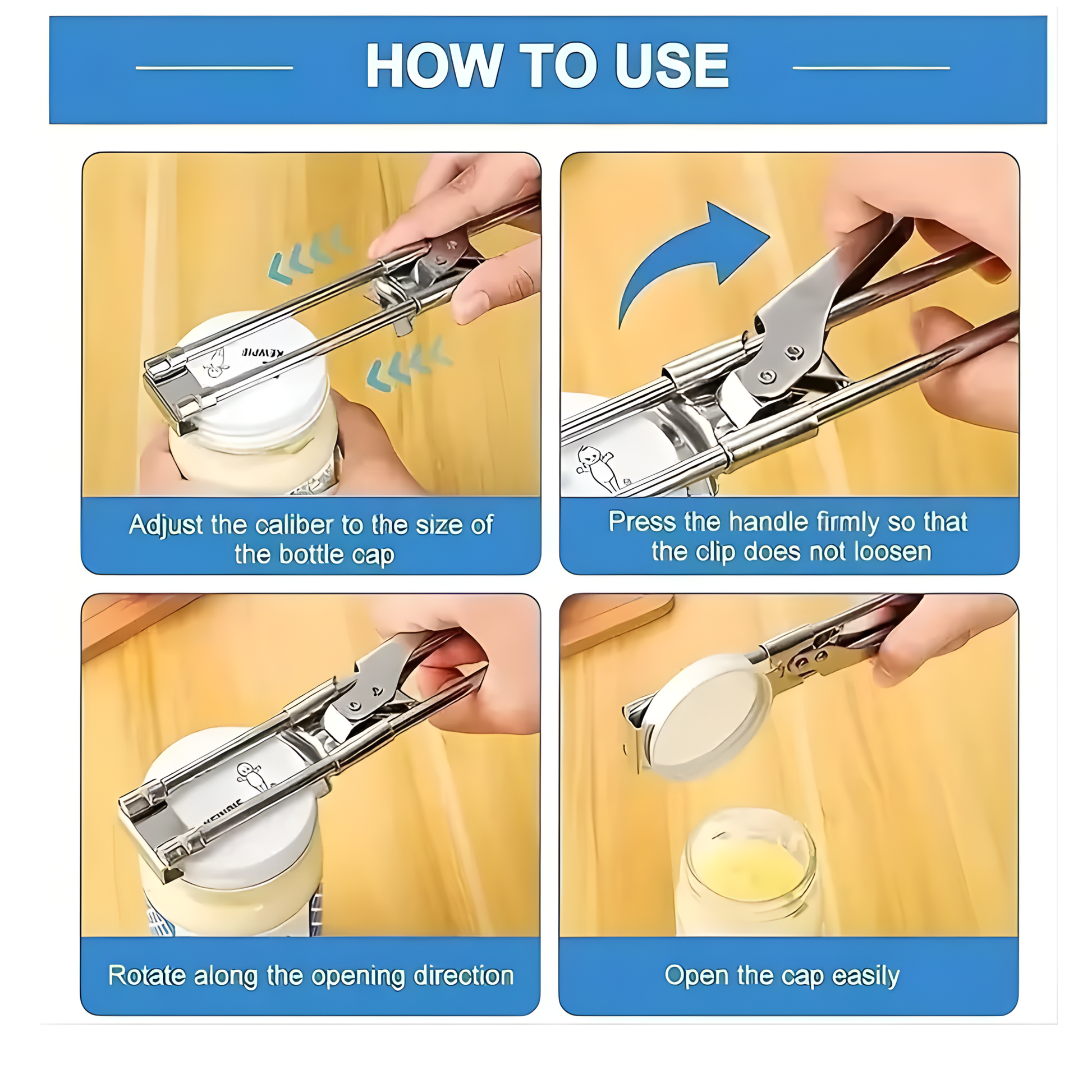 ✔ Adjustable design fits various sizes of bottles, jars, and cans.